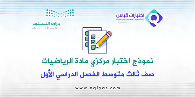 نموذج اختبار مركزي مادة الرياضيات صف ثالث متوسط الفصل الدراسي الأول